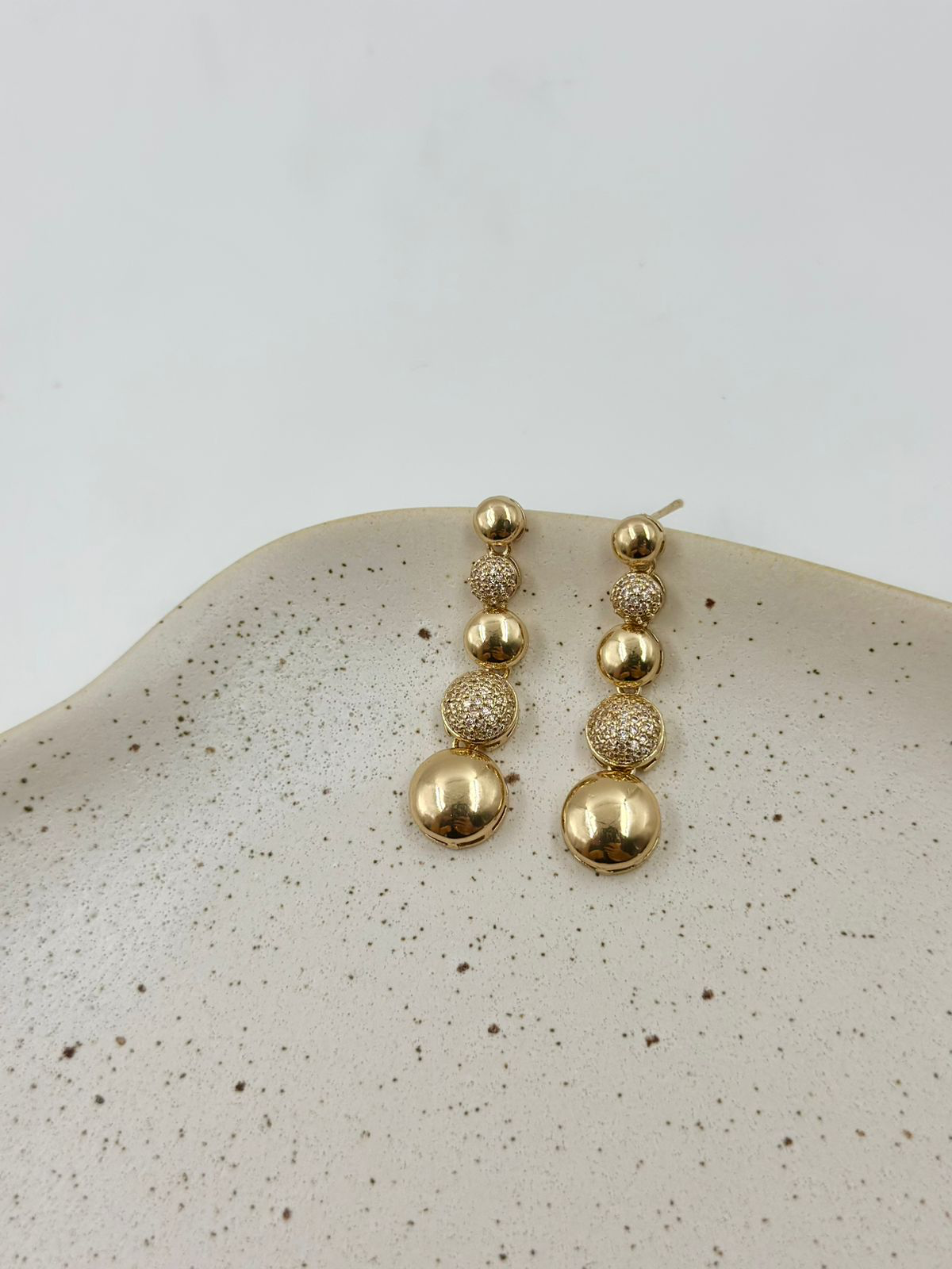 Brinco Orgânico com duas bolas cravejadas.