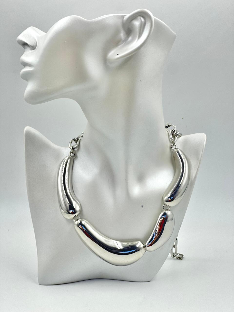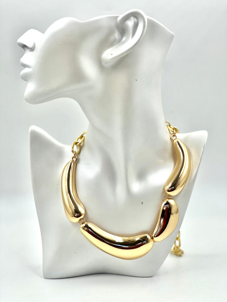 Colar de aro com gotas alongadas, sofisticado dando elegância ao colo.
