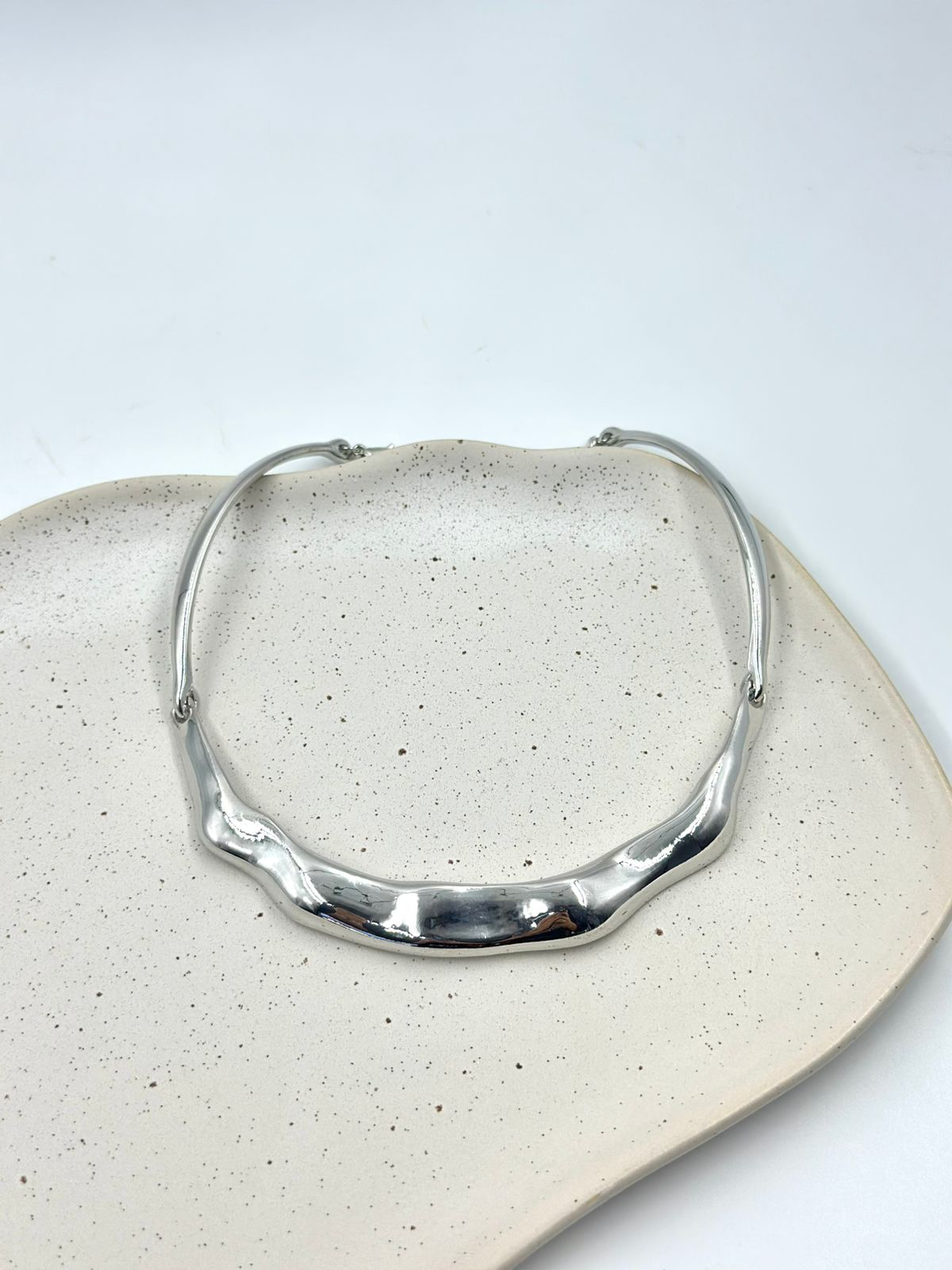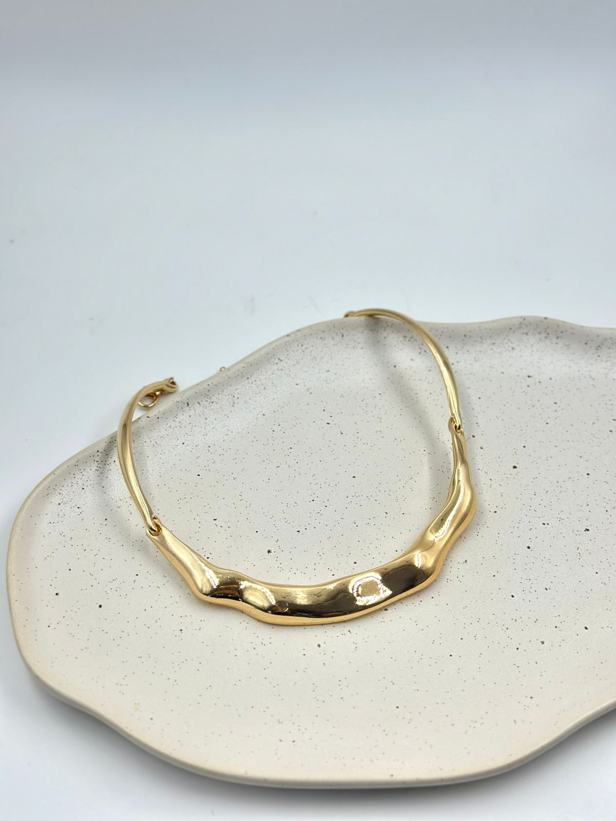 Colar de aro orgânico ondulado, trazendo elegância ao colo.